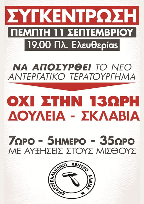 ΟΛΟΙ ΣΤΗ ΣΥΓΚΕΝΤΡΩΣΗ ΤΗΝ ΠΕΜΠΤΗ 11 ΣΕΠΤΕΜΒΡΗ 19:00, ΣΤΗΝ ΠΛ. ΕΛΕΥΘΕΡΙΑΣ