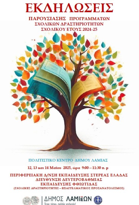 Οι εκδηλώσεις θα γίνουν από 12-14 Μάη στις 09.00 στην αίθουσα εκδηλώσεων του Πολιτιστικού Κέντρου Λαμίας