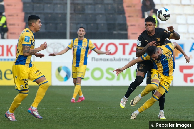 Όχι πως δημιούργησαν ιδιαίτερες φάσεις ωστόσο άρχισε να τους νιώθει ο Χριστογεώργος, με πιο σημαντική στιγμή την κεφαλιά του Καλτσά στο 26’.