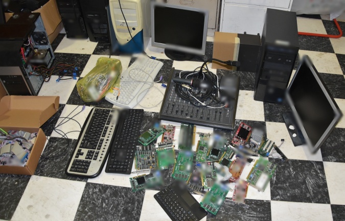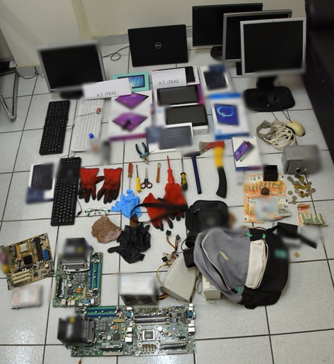 Ειδικότερα, μεταξύ άλλων, κατασχέθηκαν κεντρικές μονάδες Η/Υ, φορητοί Η/Υ (laptop), tablet, οθόνες Η/Υ, πλήθος περιφερειακών συσκευών – εξοπλισμού Η/Υ (ηχεία, «ποντίκια», πληκτρολόγια, ζεύγη ακουστικών, πλακέτες, τροφοδοτικά, κάμερες, εξωτερικοί σκληροί δίσκοι κ.λπ.), φορτιστές Η/Υ διαφόρων τύπων, πληθώρα καλωδίων διαφόρων τύπων και το χρηματικό ποσό των 610 ευρώ.