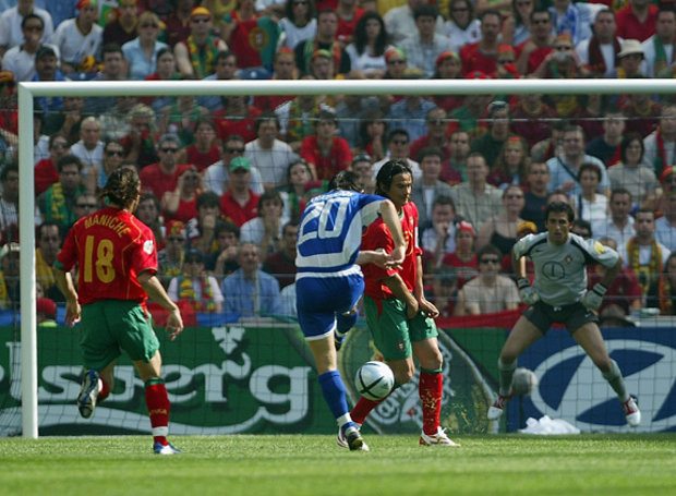 2004 Η Εθνική Ελλάδος κάνει την πρώτη εμφάνισή της στο Ευρωπαϊκό Πρωτάθλημα Ποδοσφαίρου, που διεξάγεται στα γήπεδα της Πορτογαλίας (ΦΩΤΟ). Επικρατεί με 2-1 της διοργανώτριας χώρας και επιτυγχάνει την πρώτη νίκη της σε τελική φάση Ευρωπαϊκού Πρωταθλήματος ή Παγκοσμίου Κυπέλλου. Τα γκολ πετυχαίνουν οι Καραγκούνης (7’), Μπασινάς (51’) και Ρονάλντο (93’).